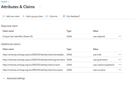 - SAMLId — the user’s Object ID in Microsoft Entra.