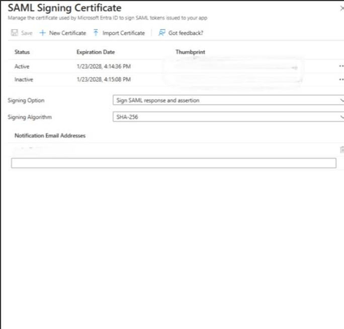 - Single Logout Service URL — Logout URL from Entra (not currently used).