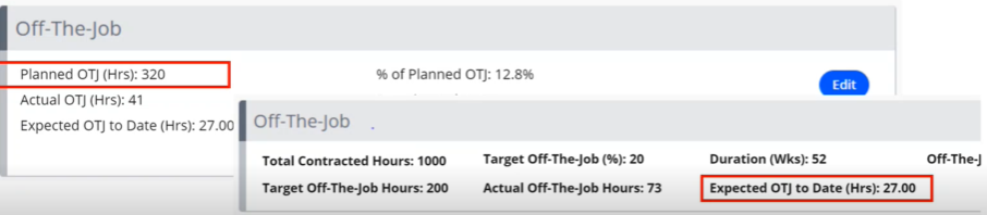 You can also report on expected OTJ using the Learners Expected OTJ Progress report.
