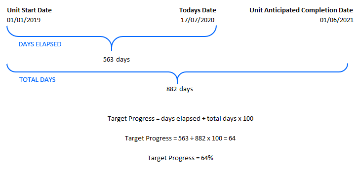 Target progress for each Unit is calculated using: