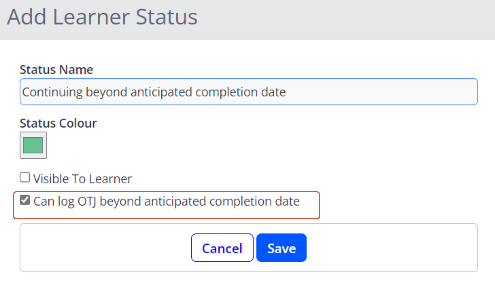 - If a learner is continuing beyond their anticipated completion date, update their Learner Status to exclude them from OTJ validation rules.